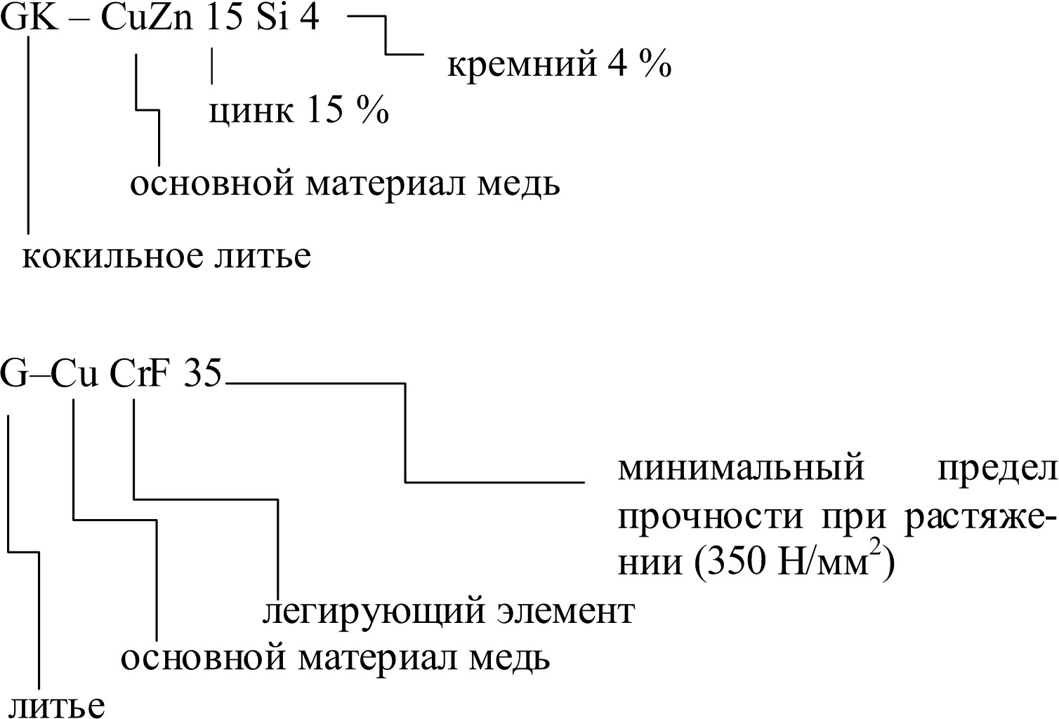 Исключение составляет медь, здесь обозначение происходит по основному материалу и одному или двум легирующим металлам.