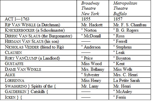 Rip—First dress:—A deerskin coat and belt, full brown breeches, deerskin gaiters, cap. Second dress:—Same, but much worn and ragged.