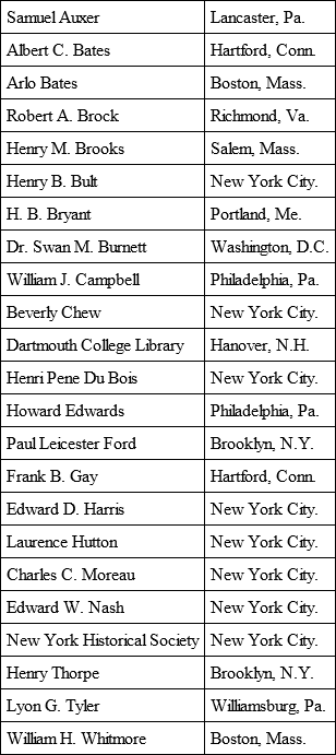 New York, Harper & Bros., 12mo, 1892.A reprint of the articles which appeared in the Book Buyer, 1886, and also in the Ex Libris Journal, Vol. II.