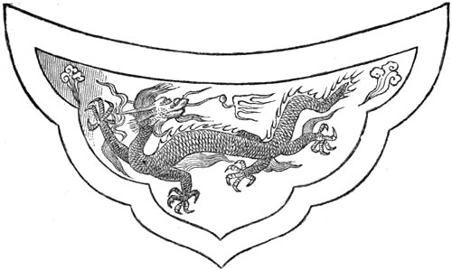 Fig. 45. – One of the Eave Tiles from the Old Imperial Palace of Nankin, showing the Five-clawed or Imperial Dragon, an emblem which cannot be borne by any outside of the Imperial service, under the penalty of death. Commoners have to be satisfied with a four-clawed dragon.