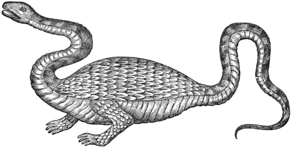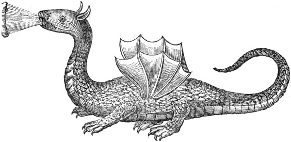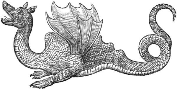 I notice that Retzoch, in his designs to illustrate Schiller’s poem, “The Fight with the Dragon,” makes the monster have only two fore-legs, and this appears to have been a common mediæval conception of it. Aldrovandus and Gesner both give figures of biped dragons. There is also a curious drawing in the Gentleman’s Magazine for 1749 – which is transferred into the pages of the Encyclopædia of Philadelphia, apparently a piracy of an English Cyclopædia, of what is styled a sea-dragon, four feet long, which stands bolt upright on two legs, and, like Barnum’s mermaid, was probably a triumph of art.