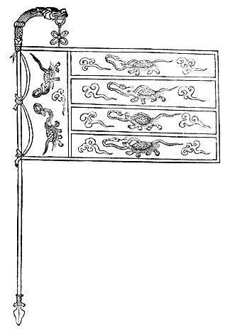 These figures of dragons in the drawings of banners (Figs. 41-44) are especially interesting; as there is fair reason to suppose that they at least have been reproduced time after time from pre-existing ones with tolerable accuracy; and that they give us a good notion of the general character of the animal they purport to represent.