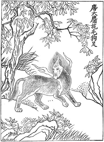 Wu Chao’s preface to the Loh Yiu says: “The body is like that of a muntjack, and it has one horn”; while the Spring and Autumn (Annals) allude to this animal in speaking of the horned Kiun.