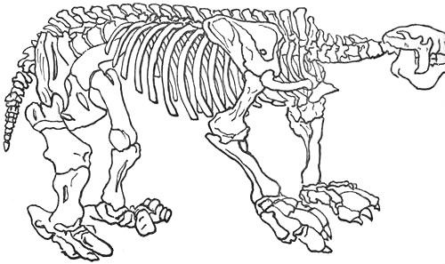 Fig. 7. – Skeleton of Megatherium. (After Figuier.)