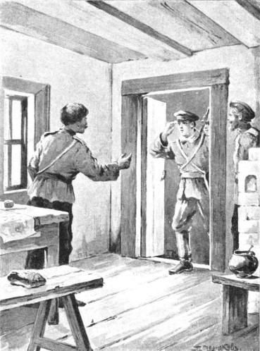 – Помните, никто из нас не знает по-немецки ни слова, – успел шепнуть Лео своим спутникам, пока их вели по направлению слабо освещенного помещичьего дома, над дверьми которого было выведено углем по-немецки: «Штаб».