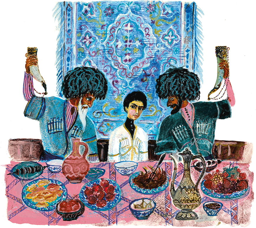 В первой комнате, устланной коврами и увешанной по стенам оружием, стояли низенькие тахты и лежали на коврах подушки. Комната эта называлась кунацкой. Здесь деда принимал своих гостей, здесь пировали лезгины своего и чужих аулов.