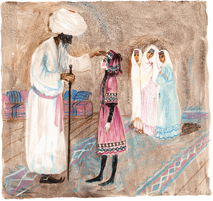 – Да будет благословенье Аллаха над моей голубкой, – тихим, растроганным голосом произнес старик и положил руку на черную головку молодой девушки, припавшей на его грудь.