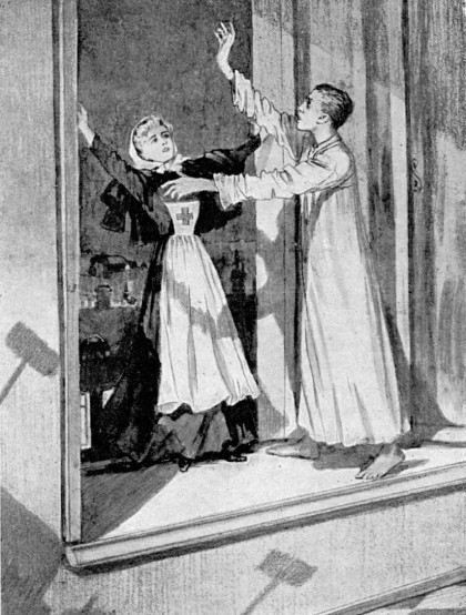 Больной в смятении… Неожиданная преграда в лице этой тоненькой сестры, заградившей ему дорогу, на мгновение останавливает его болезненно-инстинктивное стремление во что бы то ни стало выскочить из окна, Но это лишь минутное колебание…