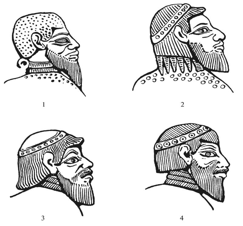 Более мелкие находки, включая расписную керамику из нижних слоев, возможно, смогут пролить некоторый свет. В нашем распоряжении нет достоверных портретов жителей Митанни. Но известно, что правившая там арийская династия поддерживала постоянные контакты с фараонами и не менее трех митаннийских «принцесс» стали правительницами Египта. Одна из них, Мутемия, жена Тутмоса IV, на сохранившейся статуе выглядит как настоящая египтянка[7], но так предписывали правила придворного этикета. Никаких изображений двух других «принцесс», Гилукхипуры и Тадукхипуры, которые попали в гарем Аменхотепа III, не дошло до нас. Некоторые ранние фараоны из 18-й династии вели войны с ариями, жившими в северной части Сирии. Они оставили нам целую портретную галерею представителей тех народов, которых они подчинили в ходе своих северных экспедиций. Большинство из них, без всякого сомнения, является семитами – амориты, бедуины и т. д. Но человек из области Нахараина на колеснице Тутмоса IV (рис. 2, 1), как нам кажется, выделяется из числа прочих и напоминает иранские типы, представленные на персидских памятниках более позднего времени. Он может быть одним из представителей марианнов, так как область Нахараина примыкала к территории Митанни и митаннийцы соприкасались там с завоевателями. Интересно также отметить, что на египетских памятниках 18-й и последующих династий амориты часто изображаются как высокие, довольно светлые, голубоглазые люди с волосами каштанового цвета. Принимая во внимание значительное распространение ариев в этой области, вполне возможно, что подобные этнические признаки не были изначально для них характерны, а явились следствием слияния с пришельцами. Систематические исследования на территории Митанни, а также городов Сирии и Палестины, в которых правили арийские династии, должны пролить дополнительный свет на эти проблемы. В преддверии такой работы я могу только привлечь внимание к некоторым явлениям, которые, как представляется, появляются в период арийского вторжения, надеясь на то, что они могут помочь в дальнейшем.