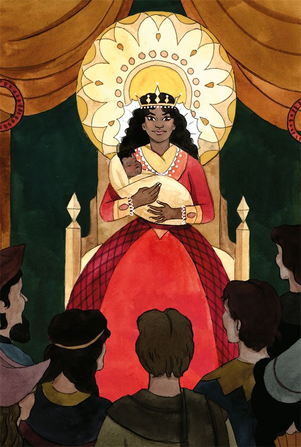 Проходит положенное время, и у королевы рождается дочь – девочка с чёрной, как вороново крыло, кожей, кроваво-красными губами и сверкающими, как снег, белками глаз.