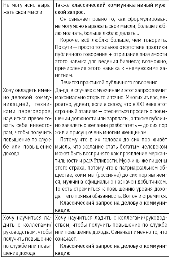 Я не очень люблю классификации, основанные на гендерном разделении, однако сейчас сама к такой прибегну. Дело в том, что женские и мужские запросы на обучение коммуникации зачастую звучат одинаково, но подразумевают под собой кардинально разные вещи. Итак, попытаемся разобраться в первопричинах.