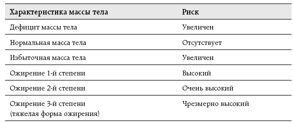 Соотношение массы тела[4] и риска развития сопутствующих заболеваний