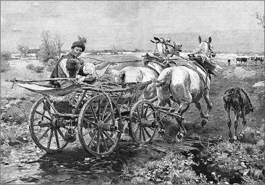 Рано утром Ржевецкий ехал домой от соседа, у которого он был в гостях. Солнце еще не всходило. Было часа четыре утра, не больше. В голове Ржевецкого шумело. Он правил лошадью и слегка покачивался. Половину дороги пришлось ему ехать лесом.