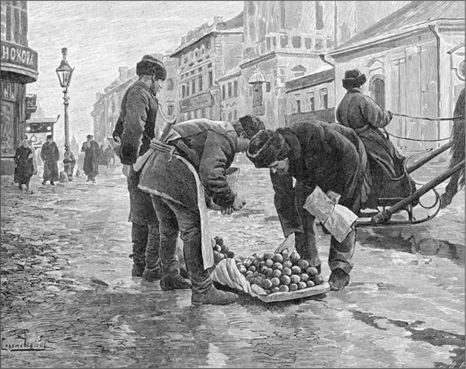 Каштанка бегала взад и вперед и не находила хозяина, а между тем становилось темно. По обе стороны улицы зажглись фонари, и в окнах домов показались огни. Шел крупный пушистый снег и красил в белое мостовую, лошадиные спины, шапки извозчиков, и чем больше темнел воздух, тем белее становились предметы. Мимо Каштанки, заслоняя ей поле зрения и толкая ее ногами, безостановочно взад и вперед проходили незнакомые заказчики. (Все человечество Каштанка делила на две очень неравные части: на хозяев и на заказчиков; между теми и другими была существенная разница: первые имели право бить ее, а вторых она сама имела право хватать за икры.) Заказчики куда-то спешили и не обращали на нее никакого внимания.