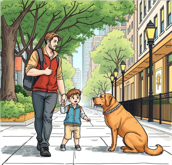 Серый хвост, с когтями лапы,Длинный, как у волка, нос.Как-то встретился нам с папойВо-от такой огромный пёс.Я сначала испугался,Приготовился бежать.Папа мой не растерялсяИ сказал, что надо ждать.Я ушам своим не верил.Он же может укусить.Мы одни с огромным зверем.Надо помощи просить.Пёс тихонько приближался.Я его чуть-чуть не пнул.Очень сильно я боялся.Ну а тот решил лизнуть.Он, как будто улыбнулся,Произнес: «Я вас не съем».Я от ужаса очнулся.Пёс не страшный был совсем.Хвост крючком, большие лапыИ веселый мокрый нос.Как-то встретился нам с папойПо дороге добрый пёс.