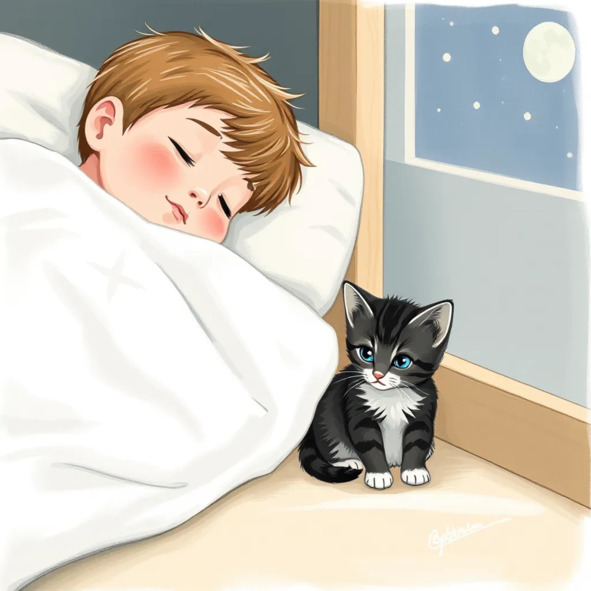 Проснулся утром, в выходной,И вижу маленький комок.Весь серый, с белой полосой.Откуда здесь он взяться мог?Похож он на пушистый мяч.Но у меня такого нет!?«Я не скажу о нем и спрячу.Он будет только мой секрет».Я так решил и, чтобы взятьК нему я руку протянул.Но руку поспешил убрать,Комок полоской шевельнул.Я с изумлением смотрел.А мячик мой совсем ожил.Он потянулся, тихо селИ лапкой мордочку умыл.Я все тревоги позабыл.И с ним по комнате скакал.Ведь у меня котёнок был.О нем так долго я мечтал.А папа с мамой, между тем,Гордились, что хитрее всех.И наблюдая в дверь за всем,Уже не сдерживали смех.