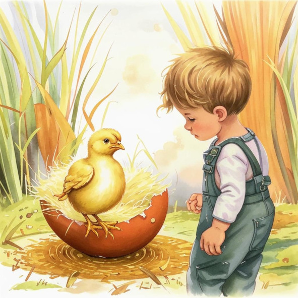 Взял у курочки яичко,Съесть хотел его тайком,Но какая-то синичкаПоселилась уже в нём.На меня она смотрела,Широко разинув рот.Но она ж яичко съела,Значит, сыт её живот!Бабушка моя тихонькоПотешалась надо мной:– Положи его тихонько, Житель он не городской. Это курочкин ребёнок. Был в яичке его дом. А зовут его «Цыплёнок». Покорми его пшеном.Мне не в силах разобраться,
