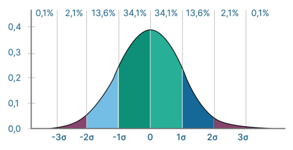 Правило 3 сигм гласит (в упрощенной формулировке): практически все значения и результаты, которые можно считать нормальными для этого процесса, лежат в интервале +– 3 сигм от среднего значения. Если погрузиться в расчеты, то получается, что все нормальные для процесса результаты будут в этих 3-х сигмах с вероятностью 99,73%.