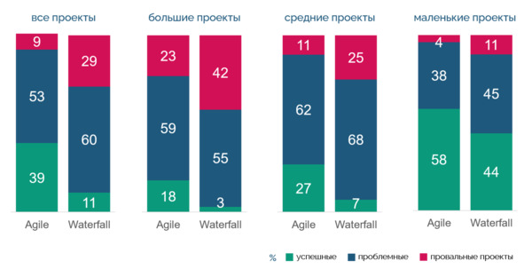Ну, и на закуску – зависимость успешности от масштаба и методологии.