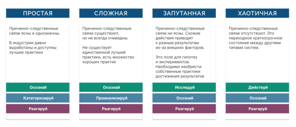 Порядок действий в такой среде: Исследуй – Осознай – Реагируй.