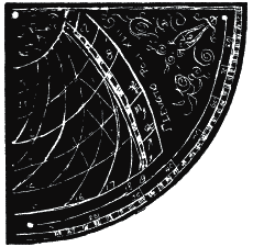 Ее не держали в руках, а подвешивали на шнуре, так что легко было увидеть звезду и соответственно передвинуть планку, а затем прочесть угол, отмеченный ее пересечением с градуировкой. Усовершенствование астролябии привело к созданию крестообразного градштока, или алидады, состоявшего из размеченного на градусы бруска квадратного сечения три фута длиной и передвижного креста. Его двигали, пока он не заполнял целиком зрительное пространство между горизонтом и наблюдаемым небесным телом. Прибор этот был очень точным, и притом его мог изготовить любой корабельный плотник, но из всех навигационных приборов он был самым трудным в применении. Нужно было крепко держать длинную часть бруска, чтобы она не колебалась, в то время как горизонт уходил то вверх, то вниз. Если наблюдатель моргал, он мог упустить точный момент считывания градуса и должен был начинать определение заново. Позднее появился обратный градшток, или квадрант Дэвиса, воплотивший в себе принципы обоих этих приборов, но более легкий в управлении. Наблюдатель, стоя спиной к солнцу, следил, чтобы его тень падала на градуированную шкалу, и по ней определял нужную величину.