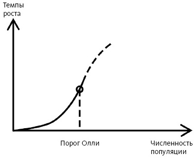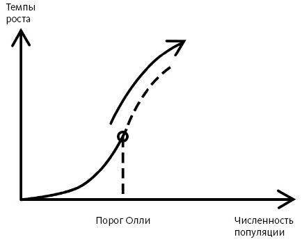 Заключение исследователя стало важным шагом в биологии: впервые была сформулирована идея о том, что существует критическая численность (названная «порогом Олли»), обеспечивающая животным большую безопасность, после достижения которой популяция начинает расти ускоренными темпами. Другими словами, кривые роста популяции Олли описывают своего рода экологическую версию сетевого эффекта.