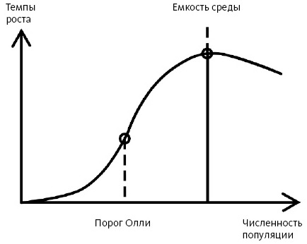 Здесь и в последующих главах я использую терминологию бизнеса: «сетевые эффекты», «критический уровень», «насыщение рынка», – но отдаю должное основополагающим идеям профессора Олли. Экологи веками создавали модели популяций животных, чтобы предсказать, как быстро они растут и когда начинают страдать от перенаселения, чтобы спрогнозировать динамику. Я использую эти идеи для описания того, как высокотехнологичные продукты запускаются, масштабируются и защищают свои рынки с помощью сетевых эффектов.