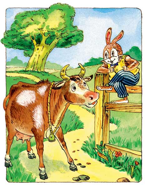 Кролик отлично знал, что Корова нипочём не даст ему молока: не раз уж она гнала его прочь, даже тогда, когда расхворалась Матушка Крольчиха. Вот Братец Кролик поплясал, поплясал у забора и крикнул: