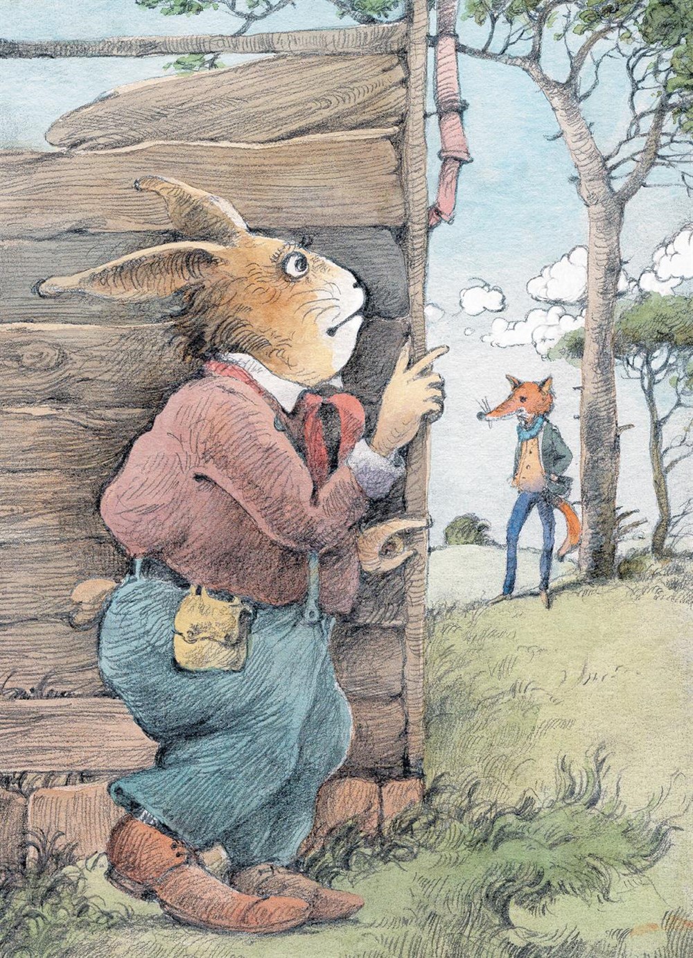 Выскочил Кролик из дверей и стрельнул в кусты; присел и ждёт Лиса.