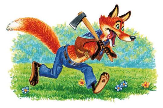 Глядь-поглядь – скачет из лесу Лис с топором на плече.