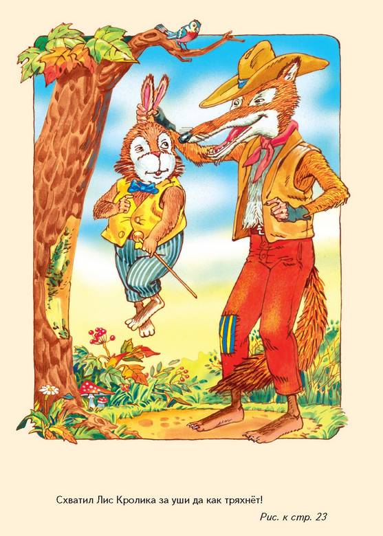 Конечно, Кролик знал, что Лису верить нельзя, вот он и решил перехитрить его. Только успел Кролик шерсть причесать и усы закрутить, глядь – воротился Лис с седлом и уздечкой, смирный с виду, как пони в цирке. Подбежал к дверям, остановился, лапой землю скребёт, грызёт уздечку, совсем как лошадь.