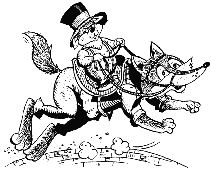 А всё это время Кролик привязывал шпоры. Как подъехали они близко к дому Матушки Мидоус, где Кролику надо было слезать, стал Лис останавливаться. Тут Кролик как всадит ему шпоры в бока и пошёл, и пошёл!..