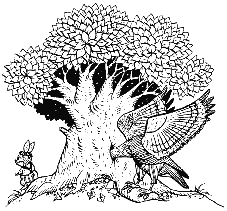 Потолковали они ещё. Сарыч согласился постеречь Кролика, пока Братец Лис сбегает за топором.