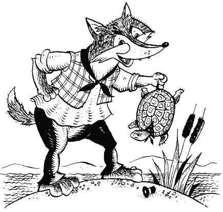 А Лис только того и ждал: схватил Черепаху за хвост и кричит: