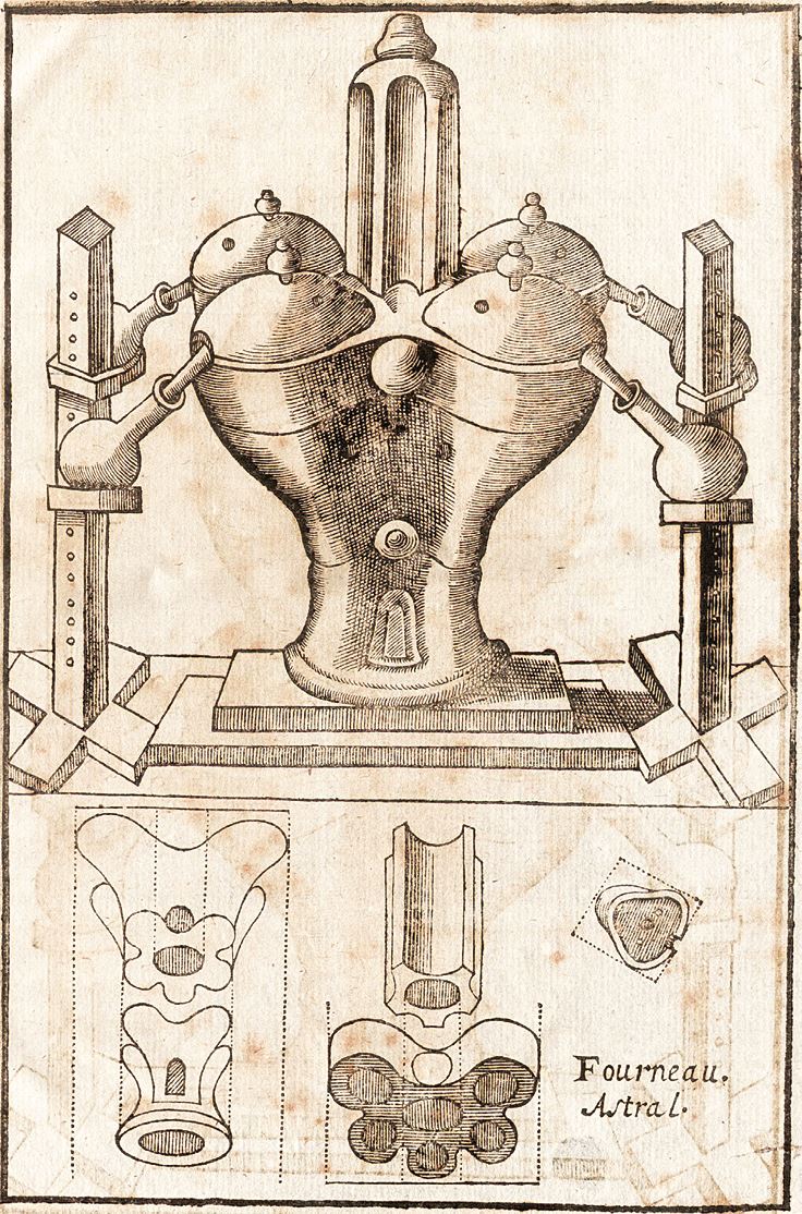 Астральная печь. Иллюстрация из книги «Истинный методический курс по физике веществ, обычно называемой химией» Ганнибала Барле. 1657