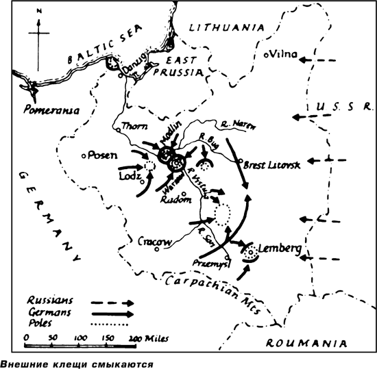 В то же время сомкнулись внешние клещи. 12 сентября 14-я армия достигла предместий Львова и, двинувшись на север, 17 сентября соединилась с частями 3-й армии, прошедшими через Брест-Литовск. Всякая возможность бегства для смелых одиночек исключалась. 20 сентября немцы назвали битву за Вислу «одной из величайших битв всех времен на уничтожение».