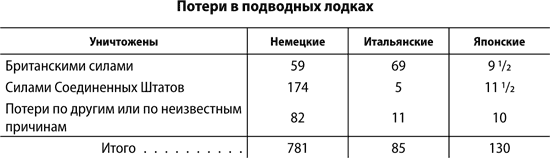 Ниже приводится таблица, показывающая потери в подводных лодках.