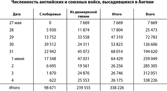 Конечная фаза была завершена с большим искусством и точностью. Впервые оказалось возможным составлять планы на ближайший отрезок времени вместо того, чтобы полагаться на ежечасные импровизации. На рассвете 2 июня со значительными французскими войсками, удерживавшими сужавшийся участок обороны Дюнкерка, оставалось примерно 4 тысячи англичан с 7 зенитными орудиями и 12 противотанковыми пушками.