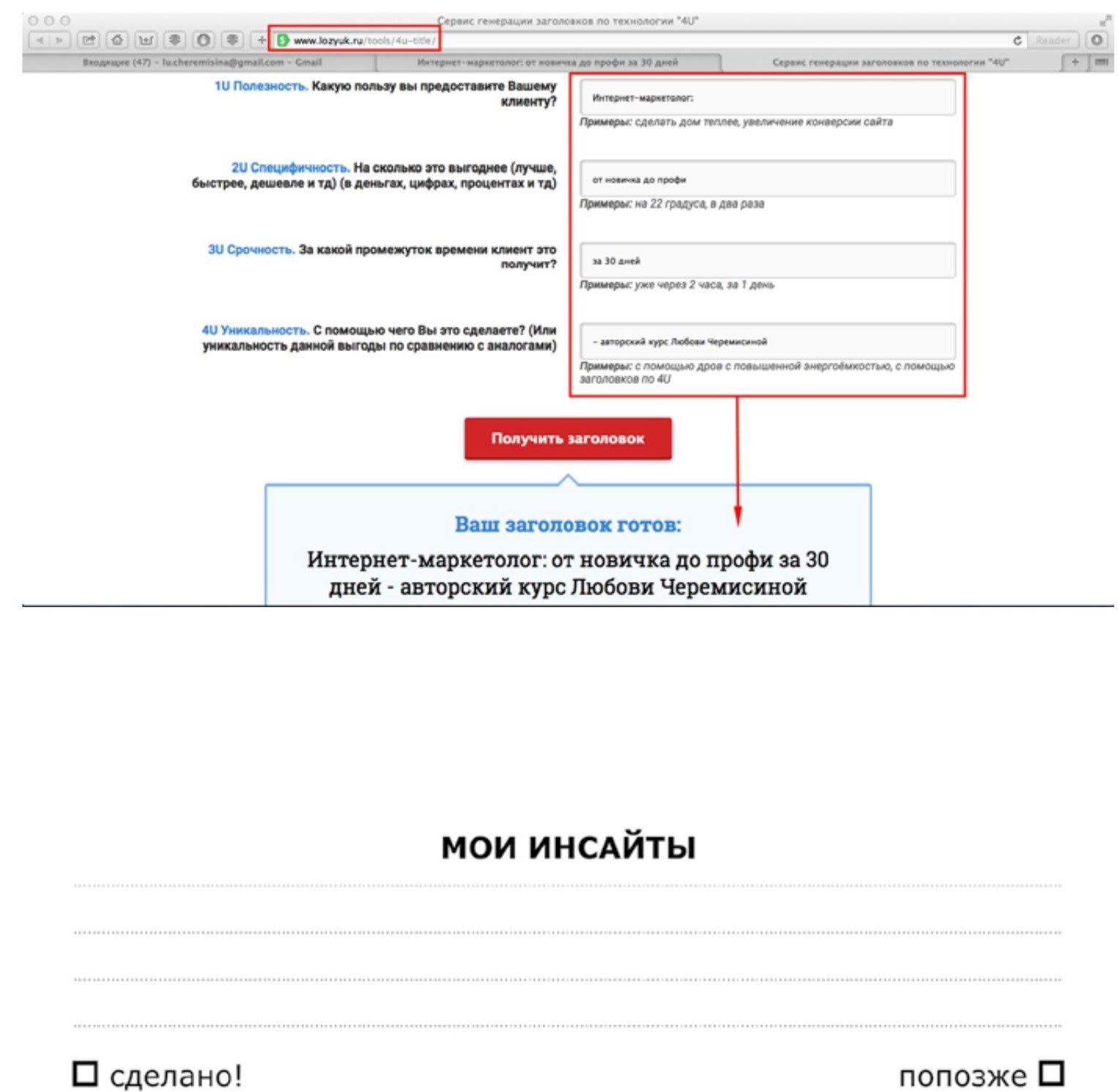 Подробную информацию об этом вы найдете, перейдя по ссылке lozyuk.ru/tools/4u-title/. Изучайте, внедряйте и получайте больше заявок с ваших страниц, электронных рассылок, ресурсов социальных сетей и видео. Удачи.