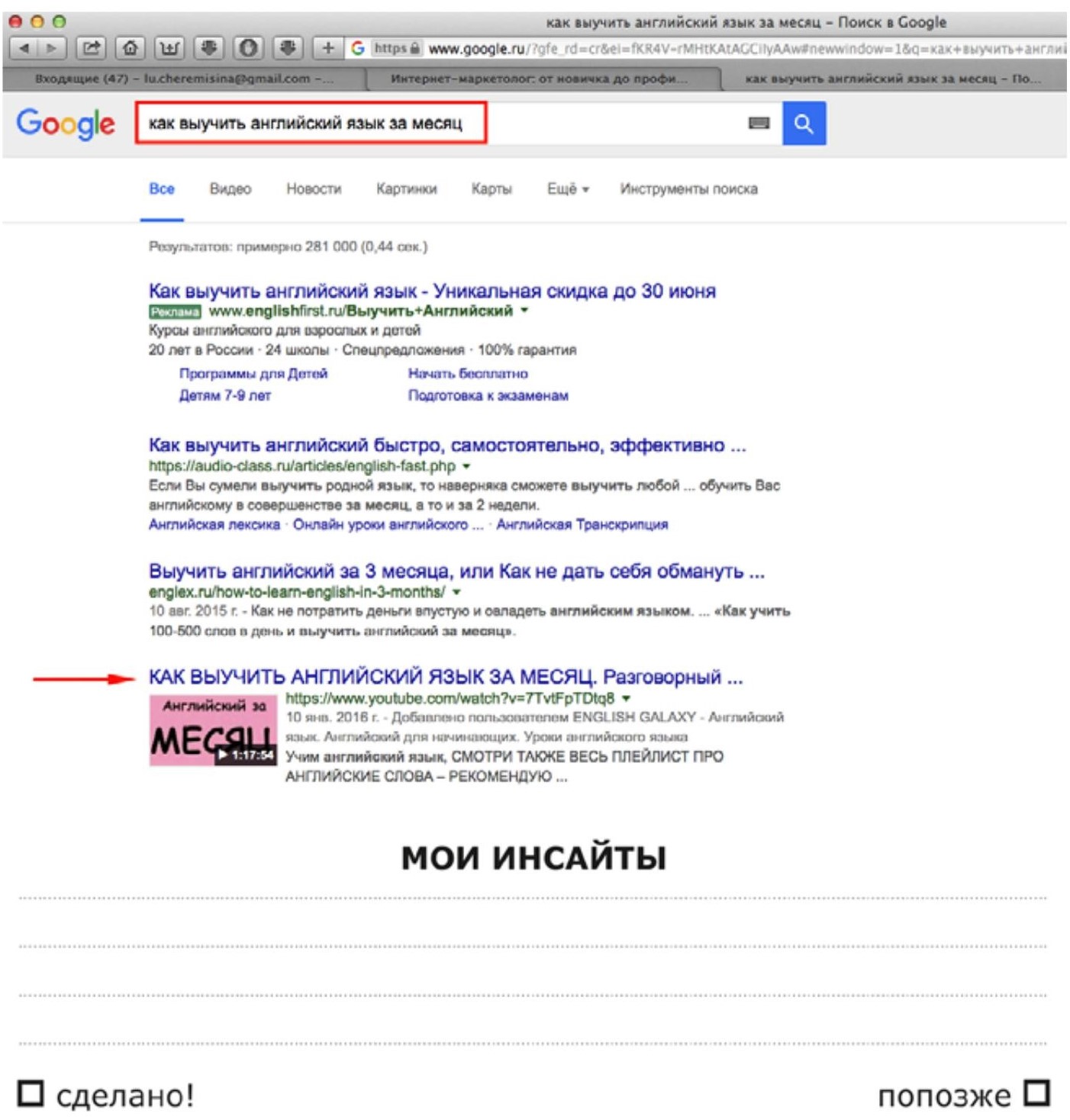 Если у вашей компании есть сайт, то вы знаете, чтобы быть ближе к клиенту, необходимо, чтобы сайт был в топ10 поисковой выдачи Яндекс и Google по запросам, которые делает ваш потенциальный клиент. Стандартная схема для попадания в топ10 – это определенные финансовые вложения и срок от 3 до 6 месяцев с начала запуска работы по продвижению. Идея 3 о том, как занять заветную строчку в поисковой выдаче без финансовых вложений и за 2 недели времени. Для этого зайдите сейчас в поисковую систему Google и наберите запросы, которые отправляют ваши потенциальные клиенты. Если у вас есть семантическое ядро, то просмотреть поисковую выдачу возможно простым перебором. Составьте список тех запросов, по которым, например, нет выдачи видео с YouTube – этот сегмент продвижения будет вашей «зоной роста». Когда этот список будет полностью сформирован, решите, какое интересное и полезное видео по каждому из запросов вы снимите для ваших клиентов. А вот о настройках, какие необходимы для попадания видео в топ10, будет следующий шаг. Удачи.