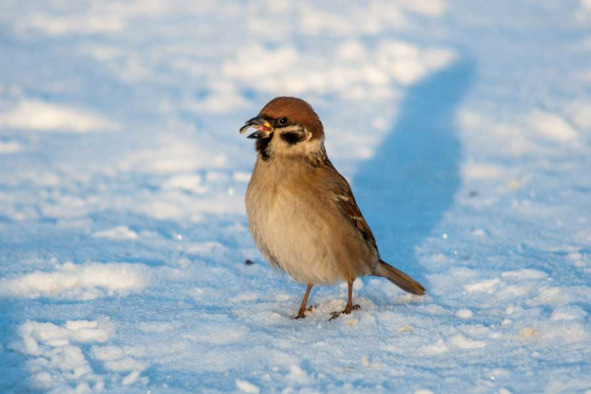 Пожалуй, нет другой птицы, настолько привязанной к человеческому жилью. Это, как говорят орнитологи, фоновая птица населённых пунктов. Никуда они не улетают, переносят наши холодные зимы, правда, до весны доживает лишь примерно десятая часть. У птиц интенсивный обмен веществ и мелким надо часто что-то клевать, иначе они погибнут. На кормушке воробей – первый гость.