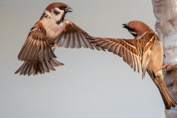Рис. 4. Драка полевых воробьёв у кормушки