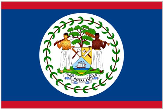 Флаг Белиза, официально утвержденный в 1981 году – при провозглашении независимости, на самом деле был создан значительно ранее и долгое время считался неофициальным наравне с колониальным флагом (правда, тогда на нем не было красных полос). Сейчас флаг выглядит следующим образом: синее полотнище, вдоль верхнего и нижнего краев которого расположены узкие красные полосы. Иногда утверждают, что синий и красный цвета символизируют самые крупные политические партии, но так как их число и состав не всегда постоянны, скорее всего, верным будет более простое объяснение. Синий цвет символизирует водную поверхность (восточное побережье Белиза омывается Карибским морем), а красный – готовность бороться за свободу.