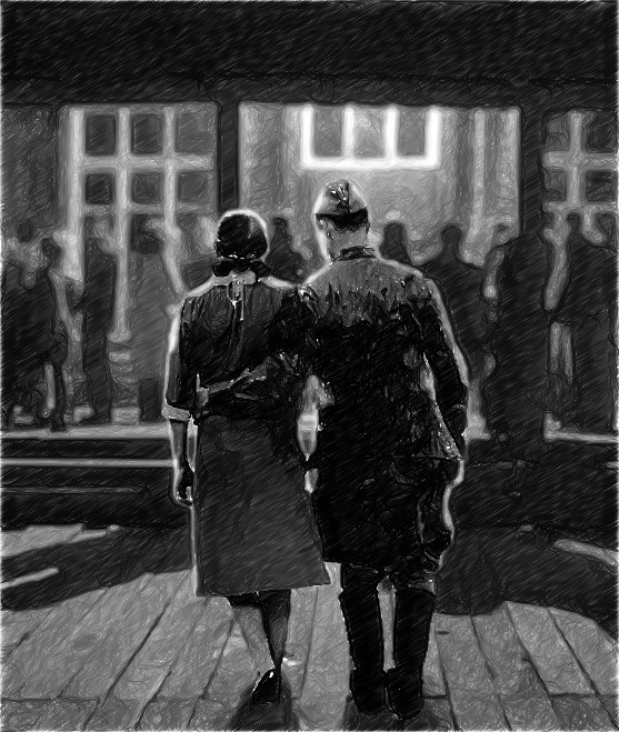 Суббота, получена увольнительная. На этом, северном, берегу Туры – Верхотурье, но какие там танцы, там и молодёжи-то нет. Не то, что в Глазуновке, приходят девчонки с Заимки! Танцы, как обычно, прошли весело. Девчонки (Валя, Римма, Тася и Клава) укладывались спать, как в дверь кто-то постучал. Стучал всё сильнее и требовательнее. Входную дверь в сени открыли девчонки из соседней комнаты, теперь стучали уже в их дверь. Удивлённая Клава толкнула крючок вверх. На пороге стоял голубоглазый солдатик в мокрой шинели. Прыгал последним по льдинам и провалился, хорошо, что не далеко от берега. Вернулся в детский дом. К кому он пришёл? Как-будто бы к Тасе. Сняли мокрую шинель, сапоги полные воды. Усадила на табурет, накрыла своим пальтишком. Кровати то маленькие, подростковые. Тася сидела в кровати поджав ноги. Миша невероятным образом сжался на табурете под пальто, только голову положил на кровать. Ему бы горячего чая, да где его взять? Как только забрезжил рассвет солдат ушёл из холодной девичьей кельи.