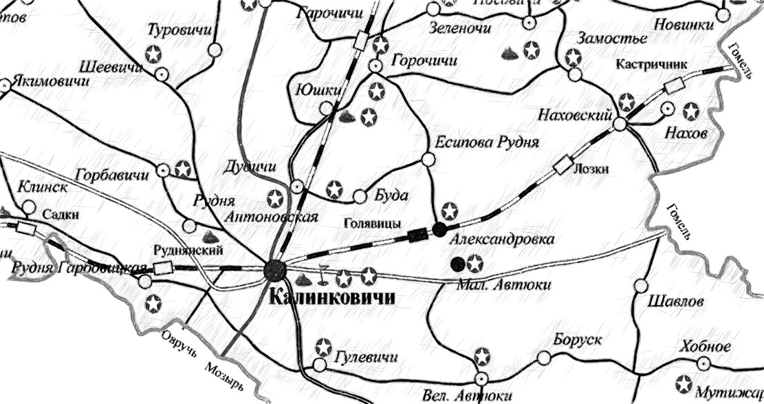 Строительная рота, в которой служил старшиной Михаил, уже построила казарму-барак близ железнодорожной станции Голевицы в 13 километрах от Калинковичей.