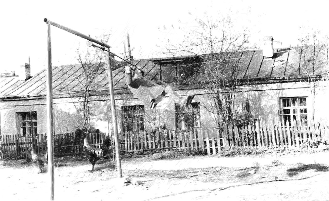 Трое взрослых, ребёнок и чемодан стояли в кромешной темноте и не знали куда идти. Миша побегал вдоль железной дороги, увидел колеи в снегу. И пошли они по снежной дороге через лес. Когда подошли к казарме, уже занималось морозное утро. Миша завёл всех в деревянный дом. Дом был недостроен: стены не оштукатурены, печь сляпана на скорую руку. «Хорошо, что крыша есть». Миша и солдат убежали в казарму, что через дорогу, скоро «Подъём!». Холод, ни дров, ни воды. Тася вышла из дома. Кругом лес. Вытащила из-под снега несколько сучьев, растопила ими печь. К ночи Миша принёс матрасы. На одной кровати спала дочь, на другой – супруги. Дом на четыре входа с верандами, но пока в доме была «прорабка». Тася заворачивала ребёнка, шла вместе с ним в лес и собирала сучья. Бросала их у печки, и потихоньку растапливала. Однажды Тася услышала сильный гул, бросилась к ребёнку, но гул шёл от окна. На стекле сидел (доселе невиданный) огромный жук: коричневый с усами и полосатым чёрно-белым брюхом. «Только бы не укусил ребёнка!». Вечером Миша смеялся: «Это хрущ, майский жук по-русски. Вместе с ветками принесла в дом». В конце мая Миша привёз из Петрикова оставленные там пожитки: шкаф и детскую кроватку. После разлива Припяти, затопления Набережной улицы, шкаф «зацвёл». Миша в свободное время его чистил, красил.