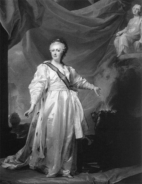 Мой дед, когда мятеж поднялсяСредь петергофского двора,Как Миних, верен оставалсяПаденью третьего Петра.Попали в честь тогда Орловы,А дед мой в крепость, в карантин.И присмирел наш род суровый…Императрица Екатерина II Алексеевна (1729–1796)