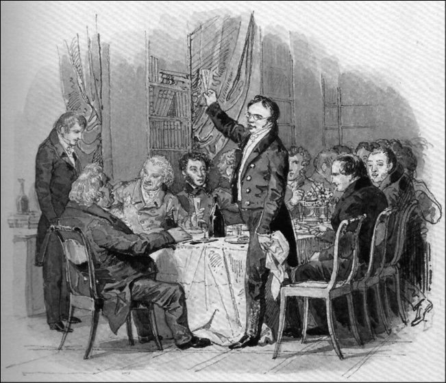Пушкин на литературном обеде в книжной лавке А.Ф. Смирдина. 1832 г. Художник А. Брюллов
