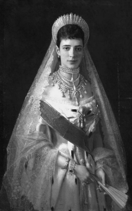 Ну а чуть позже, когда «семейный ад» для цесаревны сменился райским покоем, молодая царица предстала на полотне Маковского в драгоценном обрамлении жемчугов и бриллиантов.