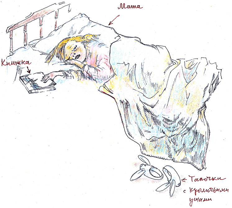 Маша посмотрела на себя – была она в ночной рубашке и в тапочках с кроличьими ушами.
